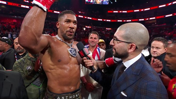 Anthony Joshua celebrando su victoria ante Jake Paul. Captura de pantalla.