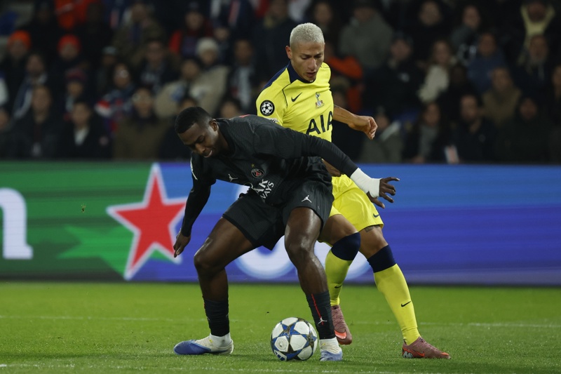PARIS (France), 26/11/2025.- Willian Pacho (L) of PSG in action against Richarlison of Tottenham Hotspur during the UEFA Champions League league phase match between Paris Saint-Germain and Tottenham Hotspur in Paris, France, 26 November 2025. (Liga de Campeones, Francia) EFE/EPA/MOHAMMED BADRA