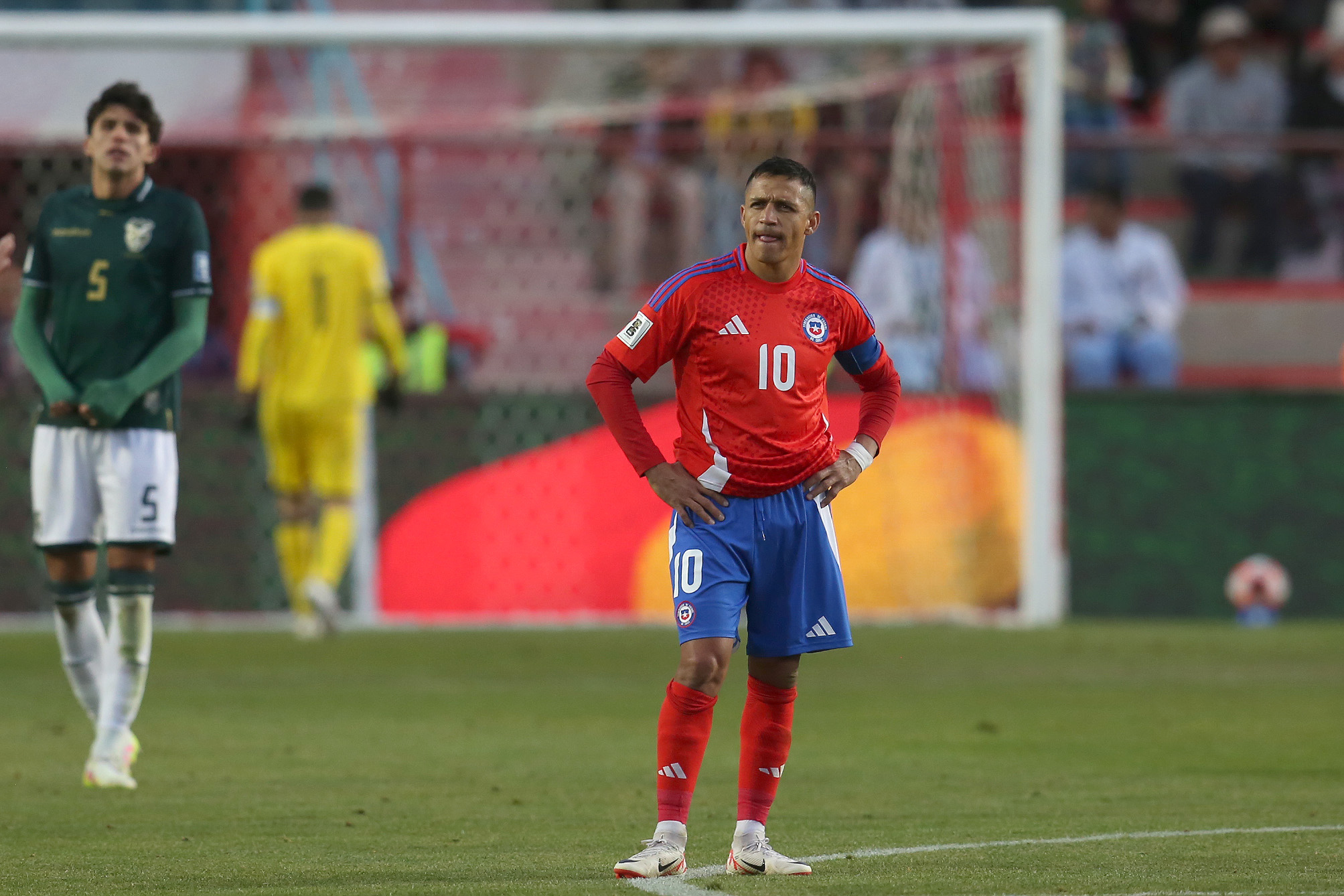EVE6407. EL ALTO (BOLIVIA), 10/06/2025.- Alexis Sánchez de Chile reacciona este martes, en un partido por las eliminatorias sudamericanas para el Mundial 2026 entre las selecciones de Bolivia y Chile en el estadio Municipal en El Alto (Bolivia). EFE/Esteban Biba