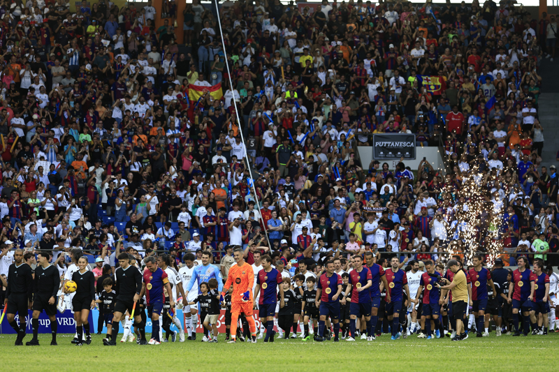 Iker Casillas y Rivaldo fueron los capitanes en el llamado ‘El Clásico en Puerto Rico’, celebrado en el estadio Juan Ramón Loubriel, en Bayamón, municipio colindante a San Juan, que estaba abarrotado por unas 20.000 personas.