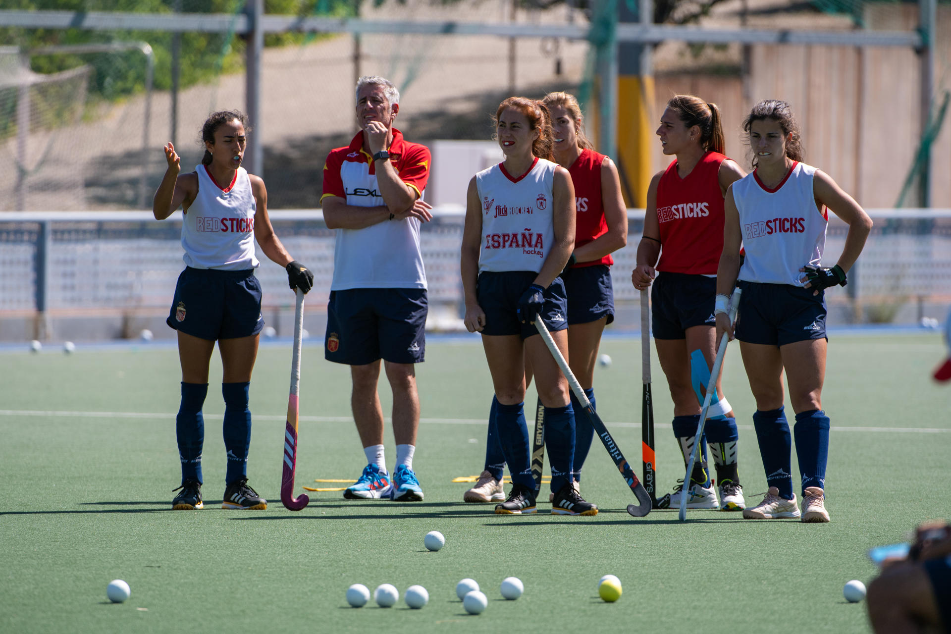 MADRID, 09/07/2024.- El Centro de Alto Rendimiento de Madrid ha abierto este martes sus puertas a la prensa para asistir a un entrenamiento de la selección española femenina de hockey sobre hierba, que ultima su preparación de cara a los Juegos de París, en un evento en el que Lexus ha reiterado su apoyo por sexto año consecutivo al deporte del stick. EFE/Fernando Villar