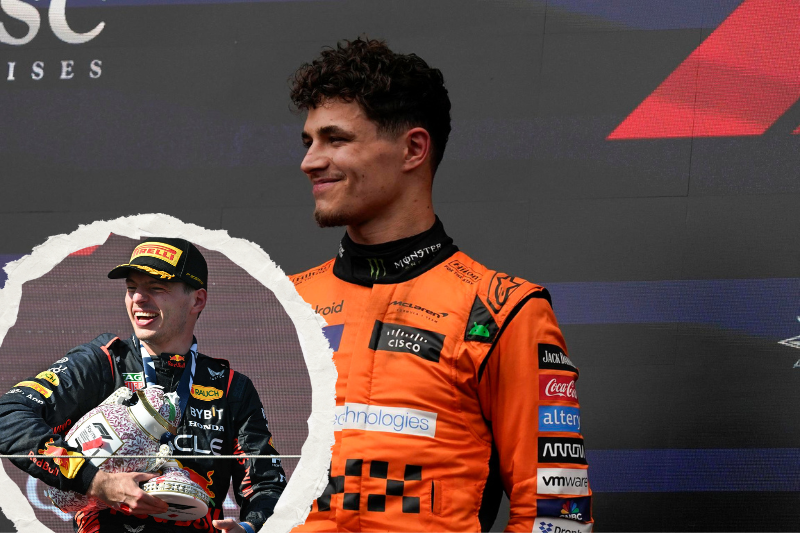 Lando Norris pasó un vergonzoso momento en la celebración junto a Max Verstappen cuando intentaba descorchar el champán con su ya característica manera de golpear ligeramente la base de la botella. Solo que, en aquella ocasión, en lugar de ayudarse del piso como regularmente hace, optó por el podio donde reposaba el trofeo del piloto de Red Bull.