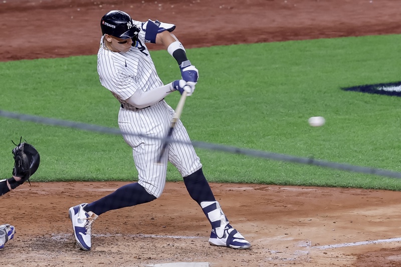 Judge, quien llegó a la caja de bateo con un out y dos hombres en las bases, logró conectar un lanzamiento del relevista Louis Varland, que pegó en el poste del jardín izquierdo para acreditarse un tablazo de tres carreras que igualó las acciones y cambió el rumbo del partido para los Yankees.